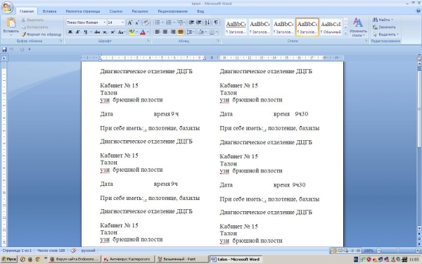2. распечатываем их в количестве на месяц в зависимости от нагрузки, к примеру работаю на ставку 39 ед в день, даем на день 3 брюшных(15ед), 3 сосуды шеи(18 ед.) = 33 ед, остальное добиваем простатами и щитовидками до 39
