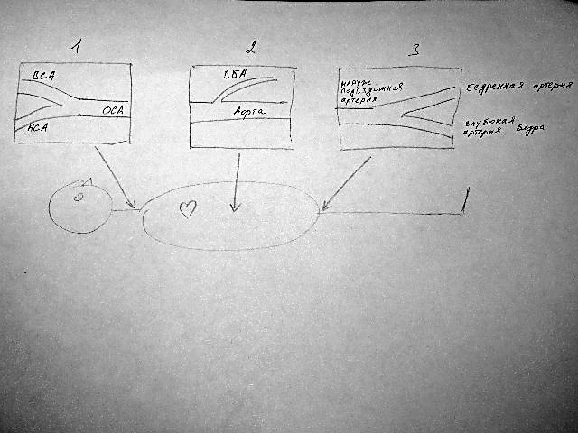 Для наглядности предлагаю картинку сосудов шеи(1), брюшного отдела аорты(2) и артерий нижних конечностей(3). Где должна располагаться бифуркация сосудов?