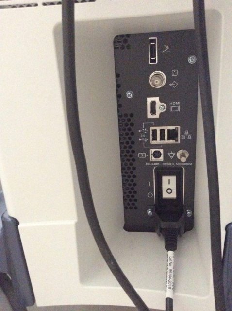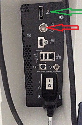 Красная стрелка - сюда подключить кабель видеовхода. Аналогичный видеовыход должен быть на УЗ-аппарате.