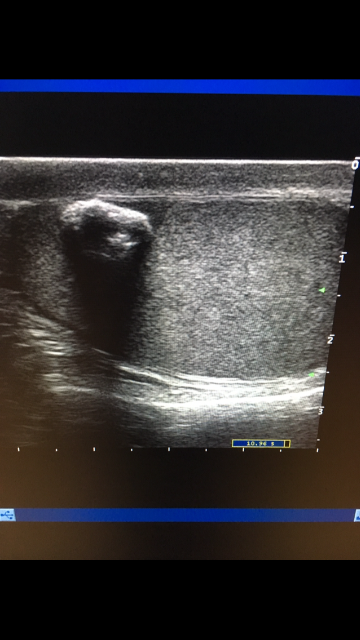 Возможно, но маловероятно, для кисты с кальцинированной стенкой больше характерен ровный контур и правильная форма