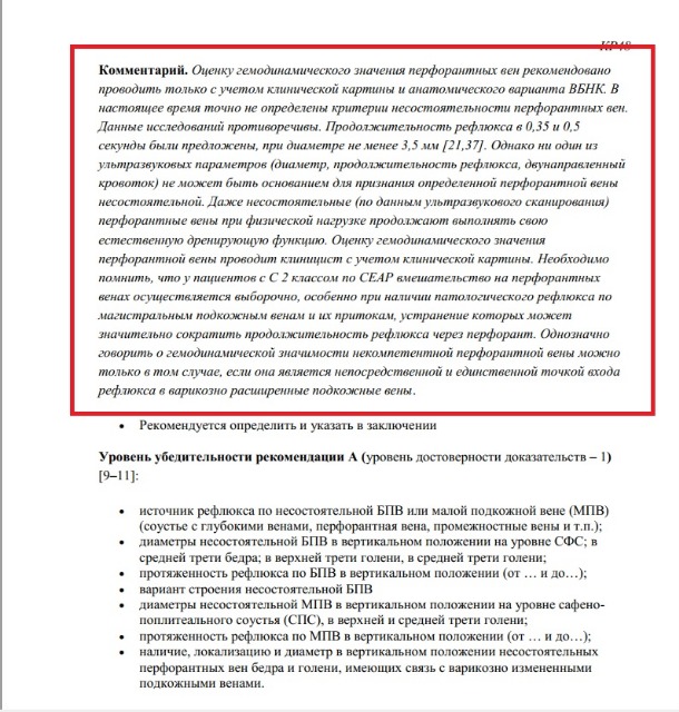 На самом деле встречал совершенно разные мнения насчет перфорантов, порой полностью противоположные. Но вот что написано на этот счет в последних клинических рекомендациях по варикозной болезни от 2017 года.