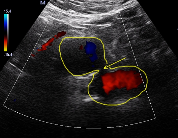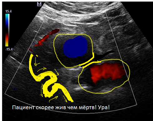 В общем я сердобольный, взял пациента на УЗИ аорты, хоть пациент сказал, что не готовился на это исследование и вот, что нашел: