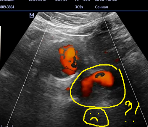 Вот что у вас у поперек латерально и внизу аорты? Артефакт?