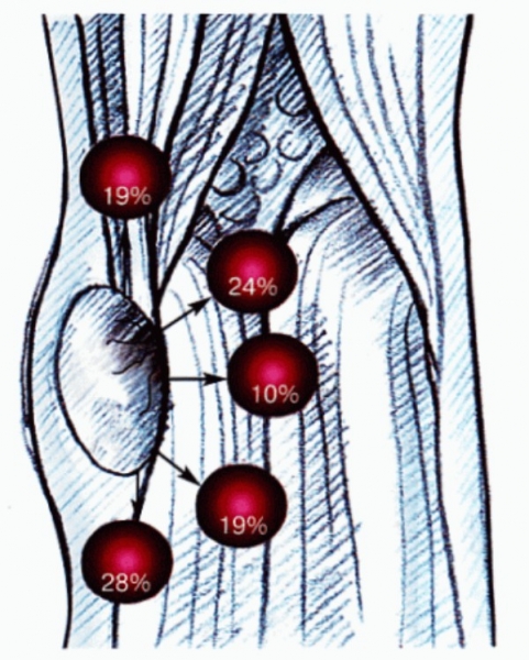 Кирилл, из каких источников схема и где прочитать? Плиз!Киста Бейкера компримирующая ПКВ, Не совсем типичное расположение кисты Бейкера, поэтому привел пример. На схеме частота локализации кист Бейкера.