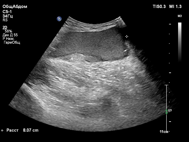 Наиболее вероятно- жидкостное образование ( абсцесс?). Отправляйте с описательной частью к хирургам.