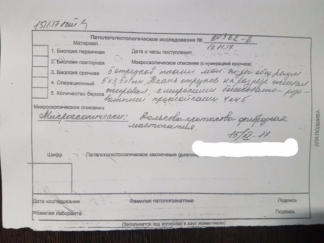 Насчет п\о гистологии, может стекла сделали из жировой дольки, а не измененного участка ( да не обидятся на меня морфологи! ).