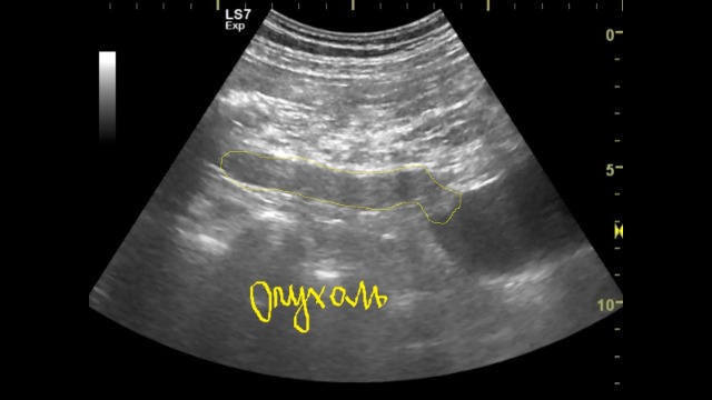 Таир, наверно стоит переименовать ролик. Почему опухоль мочеточника? Скорее это сдавление мочеточника извне, предположительно регионарным метастазом.
